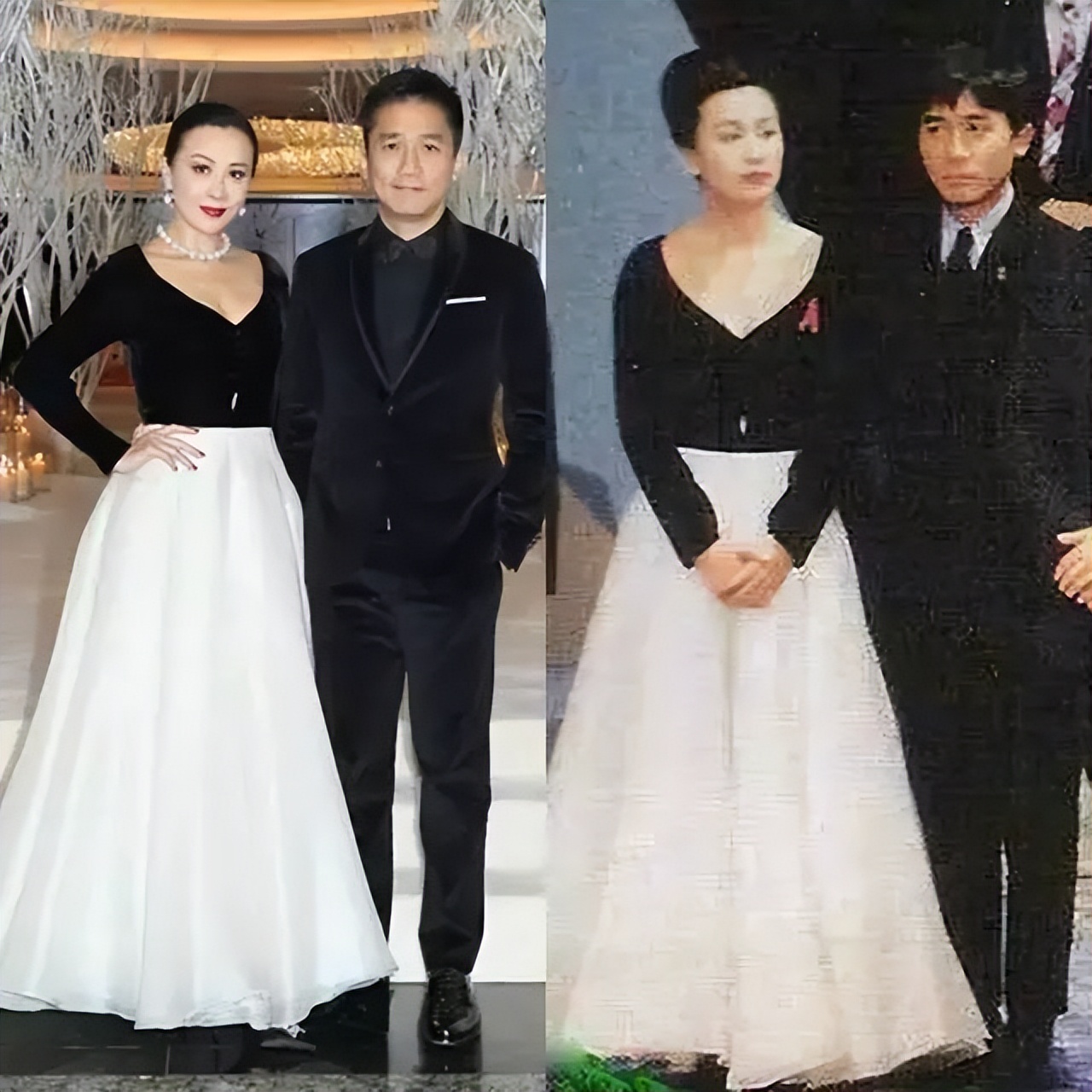 刘嘉玲穿着29岁时的旧礼服挽手梁朝伟现身,二人容貌、身形保持得很好,令观者恍惚回到20年前。