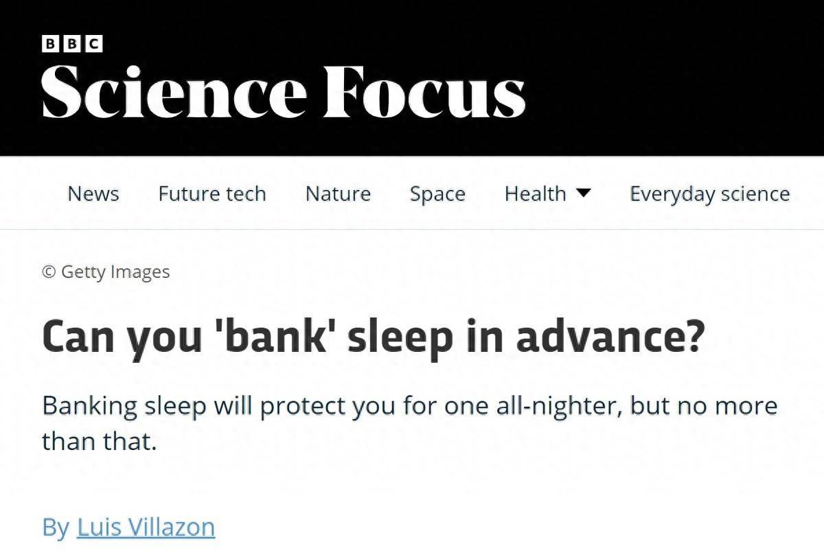 “预存睡眠”概念源于美国沃尔特·里德陆军研究所2009年开展的一项研究。研究人员让一组志愿者每晚睡10小时,随后所有人进入每天只睡3小时的睡眠限制期。结果发现,那些提前“预存”睡眠的人,在睡眠剥夺期间警觉性更高,注意力下降幅度更小。后续研究也发现,连续三晚预存约90分钟睡眠,能提升医生之后的夜班表现;预存睡眠的职业运动员,身体压力水平更低、运动表现更好。